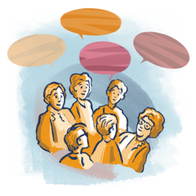 Bei unserem ersten Treffen gaben uns unsere Gesprächspartner:innen wertvollen Input, was Online-Module für sie nützlich und angenehm machen würde.